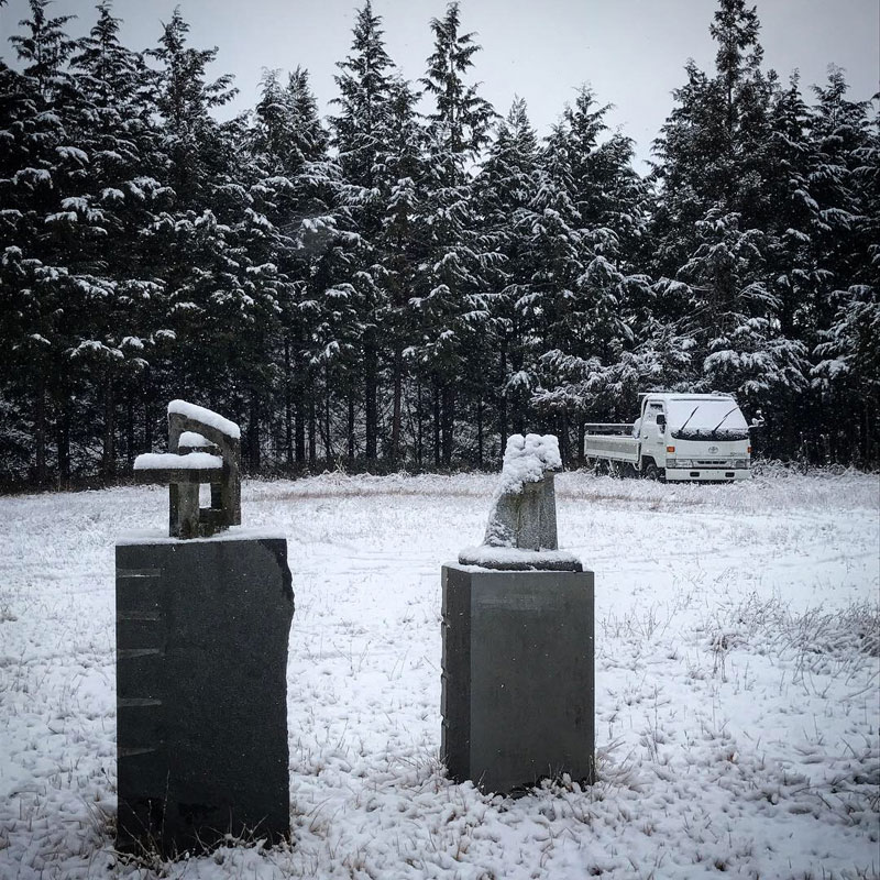鼻水止まらず風邪気味だったけど屋外で石彫ってるとすぐ治る。