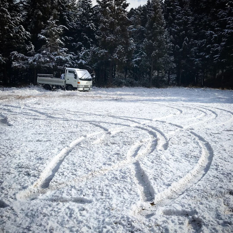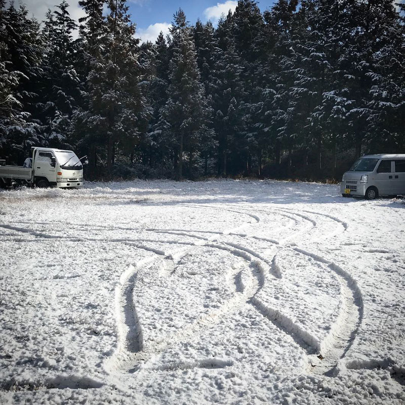 約1年ぶりに車の轍で描くふたつのハート。今年最初はこんなもので。次回リベンジ。