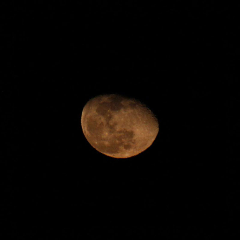 午後9時前に仕事から帰ってくる途中のカミさんから電話。「月がすごいよ!」