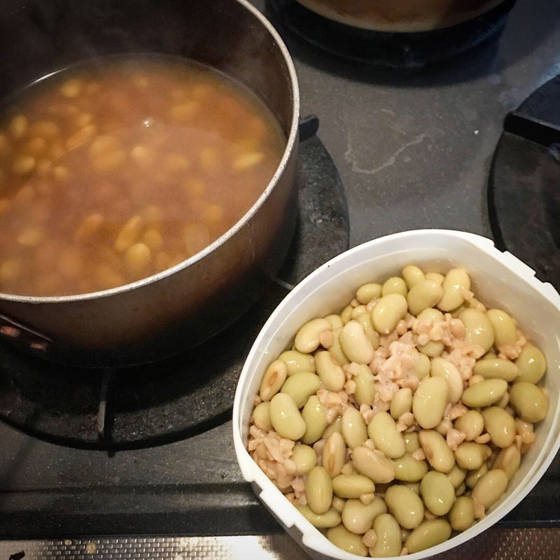 今晩には青豆納豆になってるはず。残りは塩と醤油で一煮立ち。