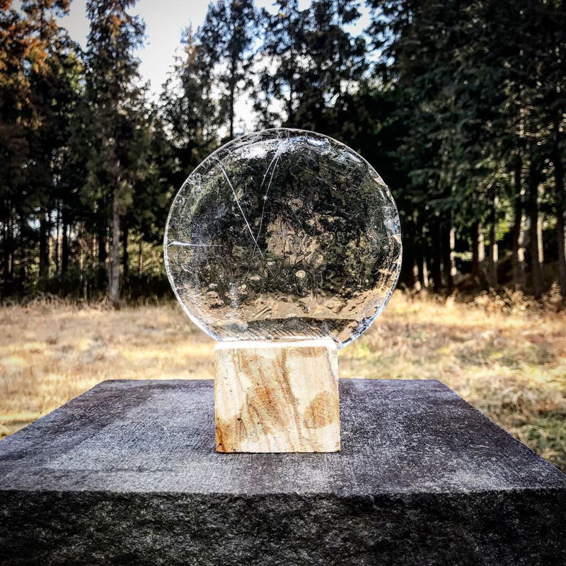 天草木目石に切り込みを入れて丸い氷をはさんだら、それだけで作品みたい・笑