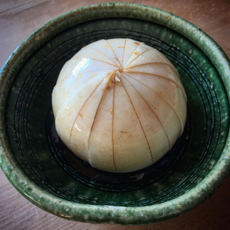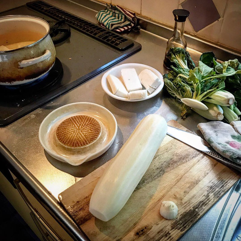 家に戻って昼食。三田農園のカブ。皮も剥かずに醤油に漬けるだけでご馳走に。甘くて柔らかい。
