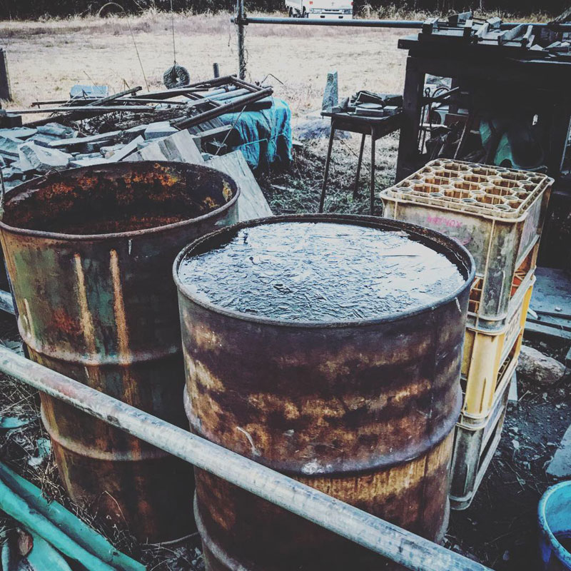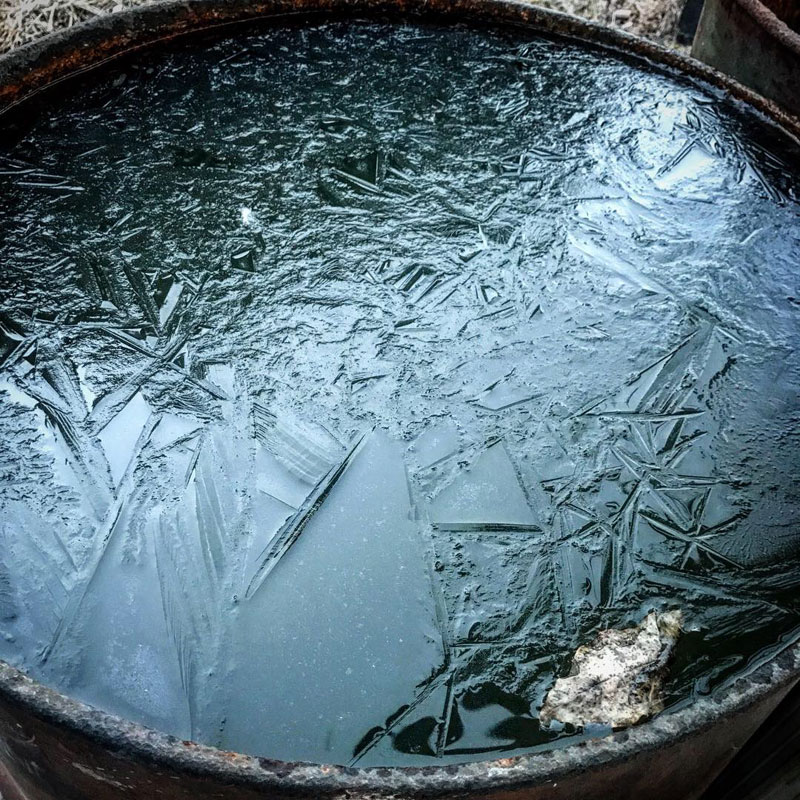 ふとドラム缶を見たらすでに凍り始めてる。