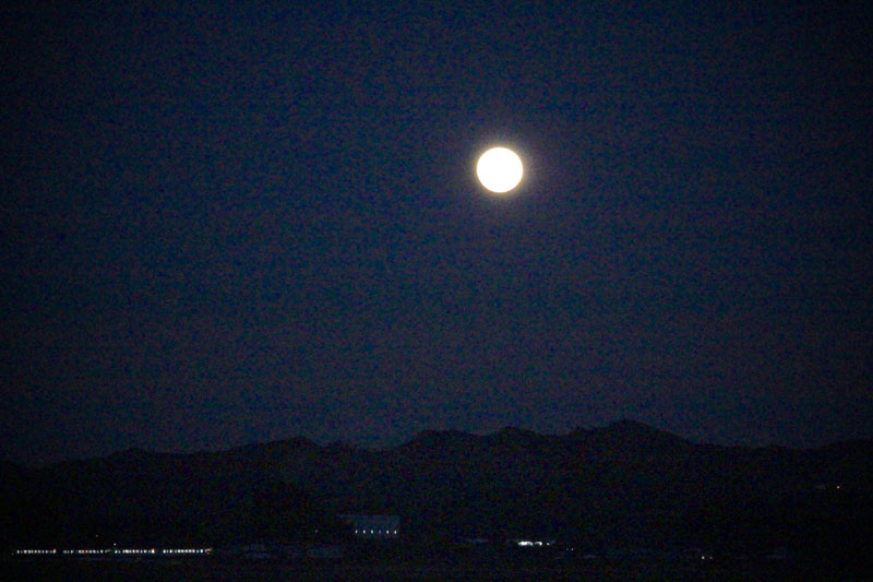 地平線から昇ってくる時のスーパーウルフムーンの満月は赤くてきれいだった。