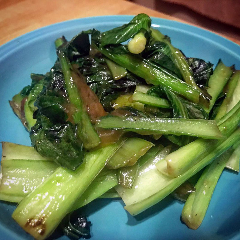 三田農園の葉物炒めた。甘い。砂糖入れたみたい。