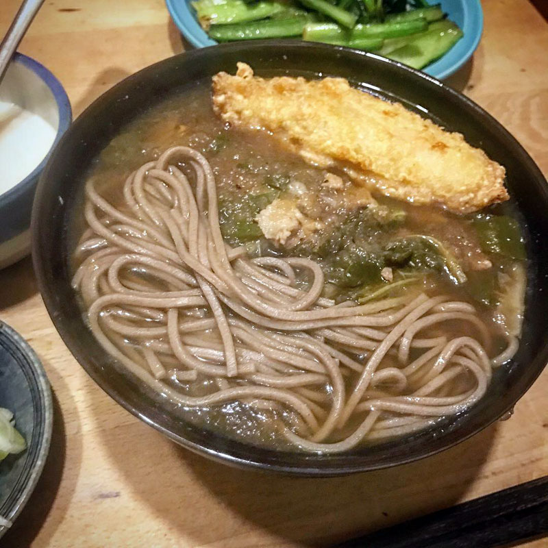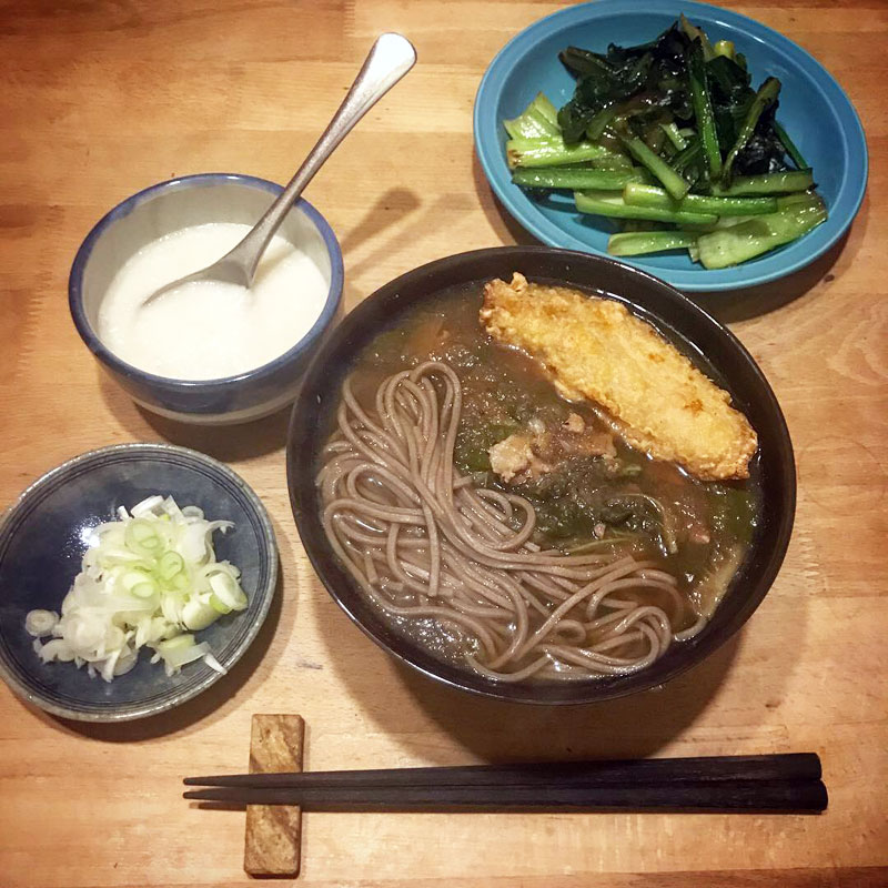 昼の雑煮の汁に、カブを漬けた醤油を足して蕎麦つゆに仕立て直して夕食。
