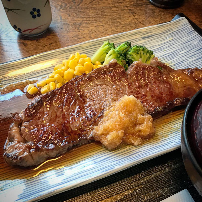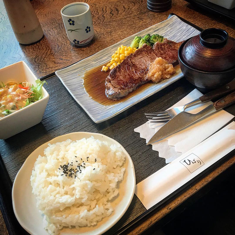 居酒屋レストランひばりでステーキ定食ご馳走になった。