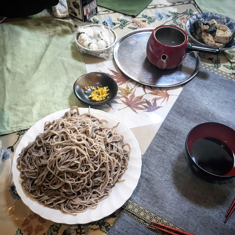 そしてあっという間に昼食。みんなで美味しいお蕎麦。8人で約1キロ!茹でるの大変過ぎ。お湯足にこぼした!この盛り皿が3つ!