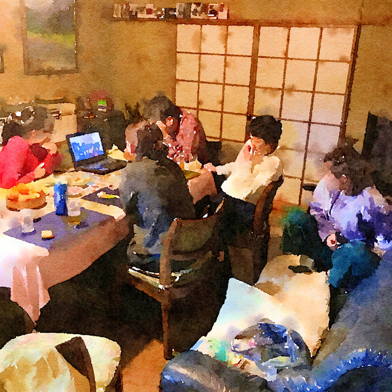カミさんのコンサートの動画を見る妹家族 。真剣に見てくれて話しかけられない感じ。カミさんにも力になっただろうなぁ。今宵はまだまだ続くよー。姪っ子は今年から海外に出て行くって。来年からは8人揃う事は難しくなってくるかなぁ。本当に楽しい8人の正月だったなぁ。