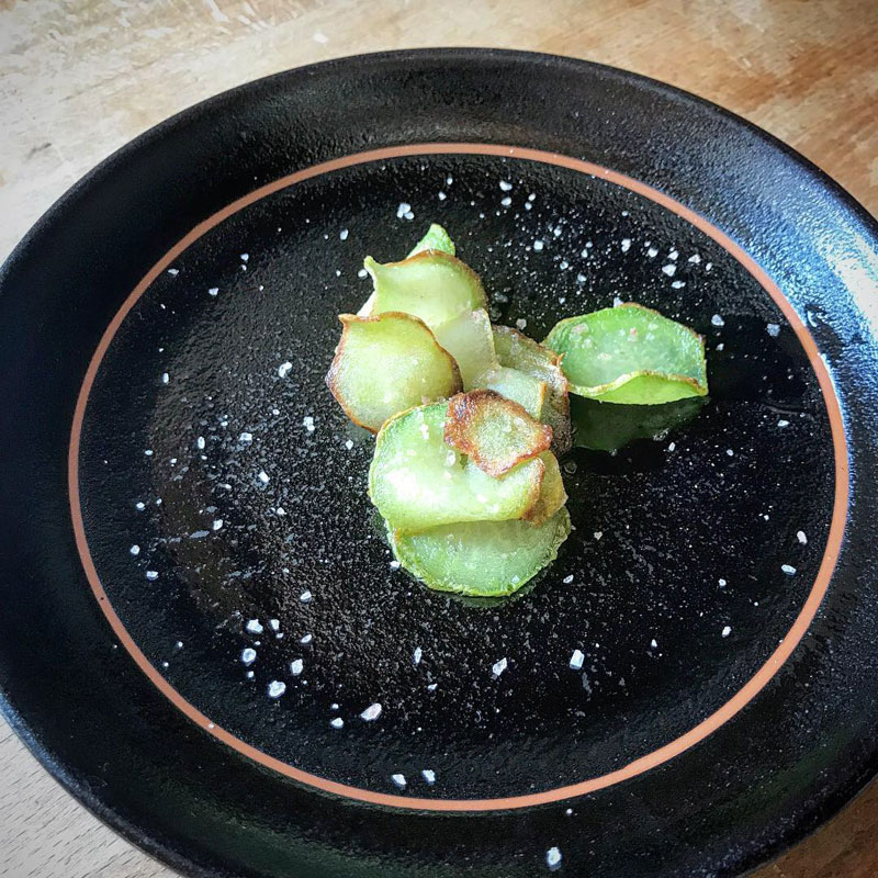 畑の小さなコールラビを極薄くスライスしてソテー。甘い、甘い!この季節の野菜は糖を蓄えて寒さから体を守り春を待っている。