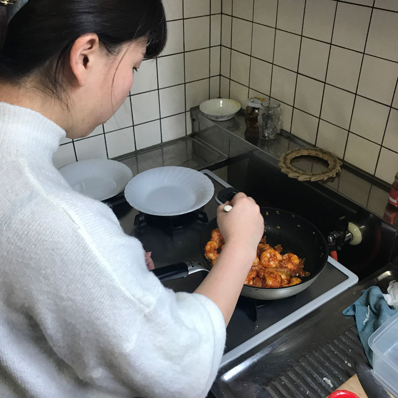以前作って大好評だったエビチリを、また姪っ子が頼まれた。冷凍のシーフードじゃなくて、高級な車海老が素材で若干緊張気味・笑
