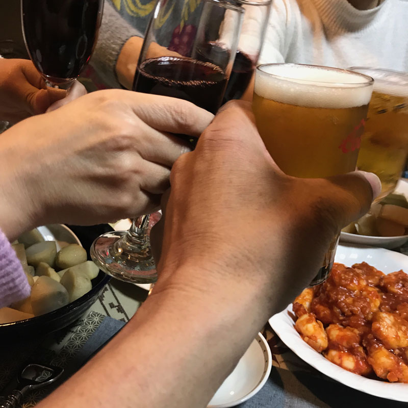 久しぶりに両親、カミさん、妹家族全員8人が揃っての乾杯ですよ。