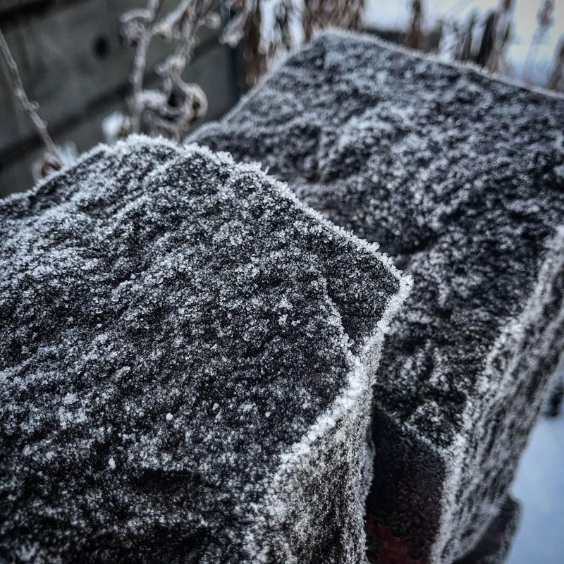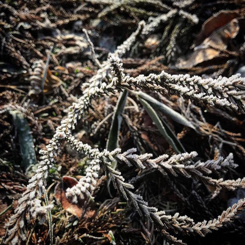 仕事場の枯れ草も石もみんな凍ってる!