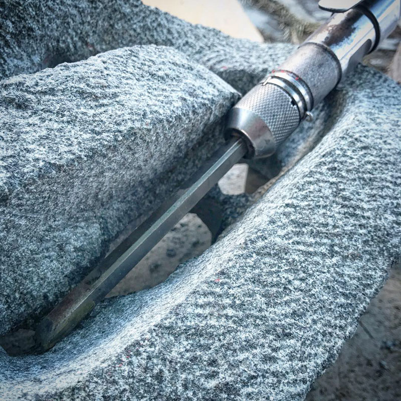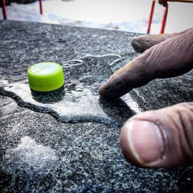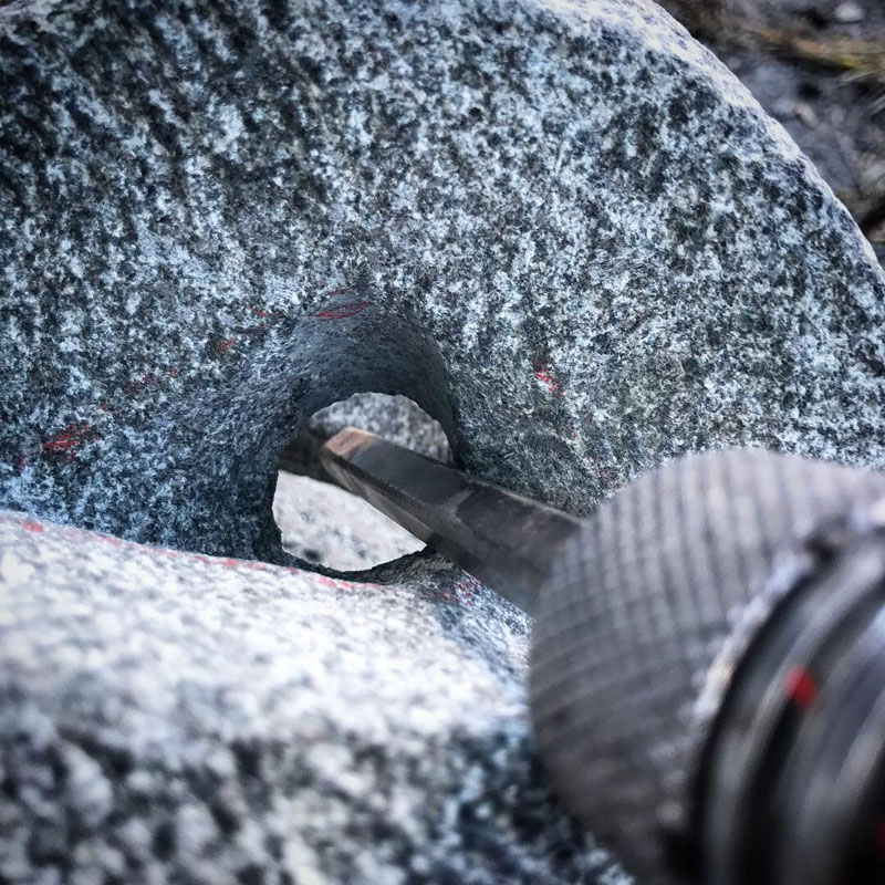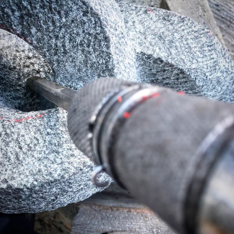 一手間違えると石が折れる。最後まで彫り進める震動に石が耐えてくれるか割れるのが先か。ここまでくると緊張の中一日彫っても削れる量はほんのわずか。