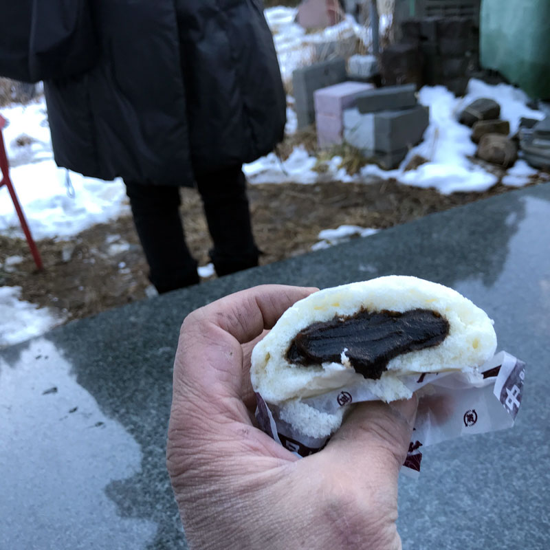 カミさん、陣中見舞いに温かいあんまん持って仕事場に来てくれた。