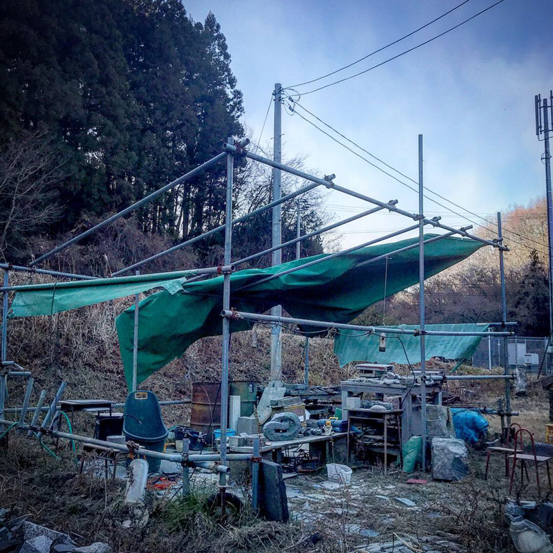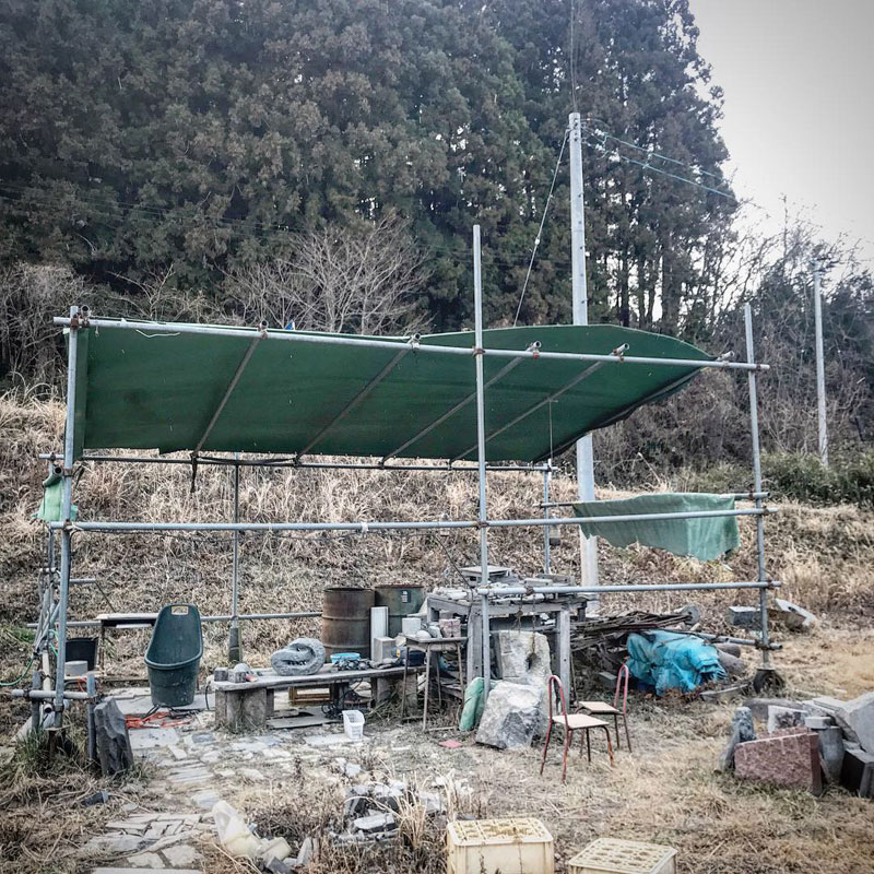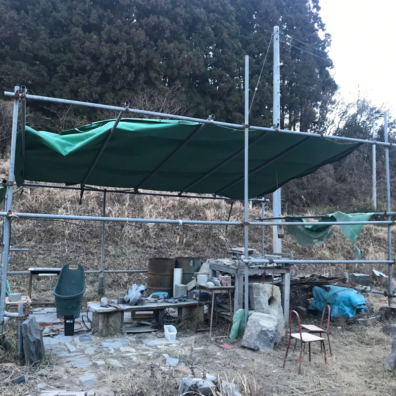 この下で石を彫っていたら突風に吹かれた!と思ったらテントも飛んだ。