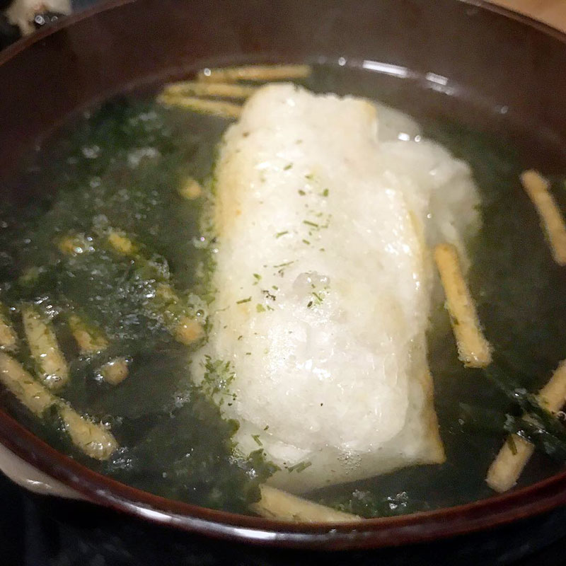 杵付き餅をお茶漬け、