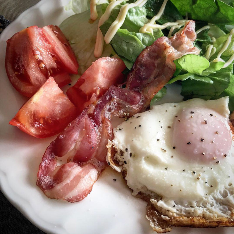 サラダとパンと味噌汁の実家のいつもの朝食。
