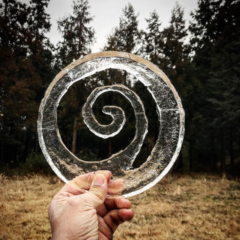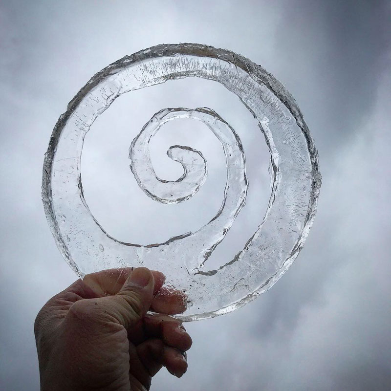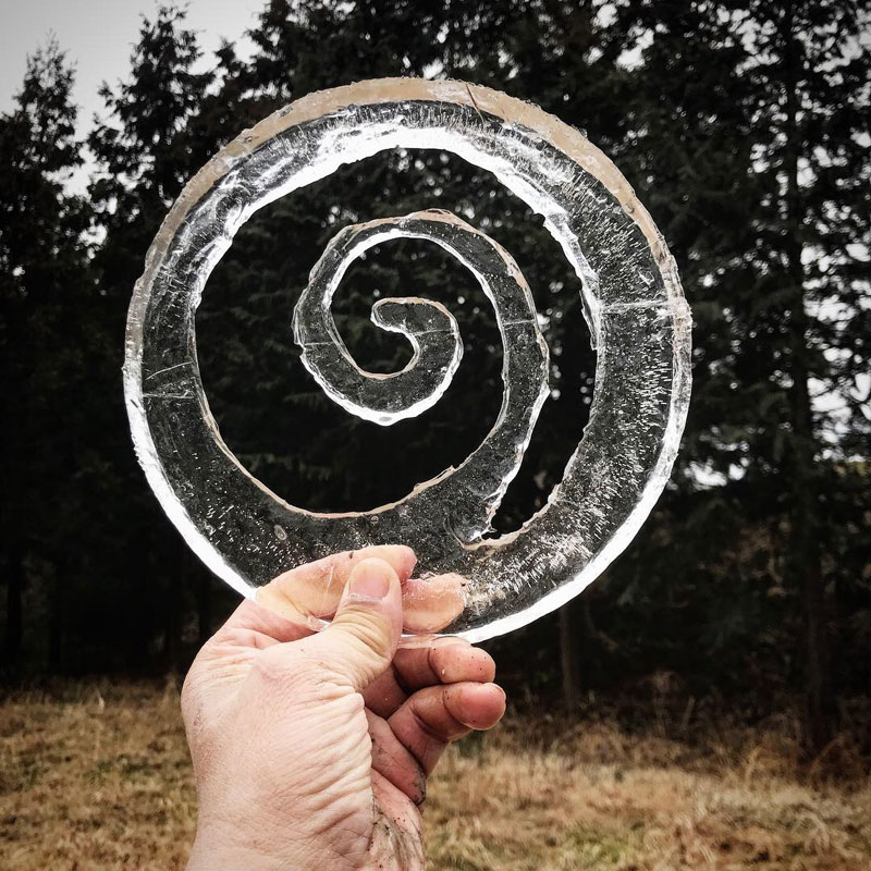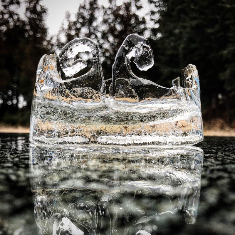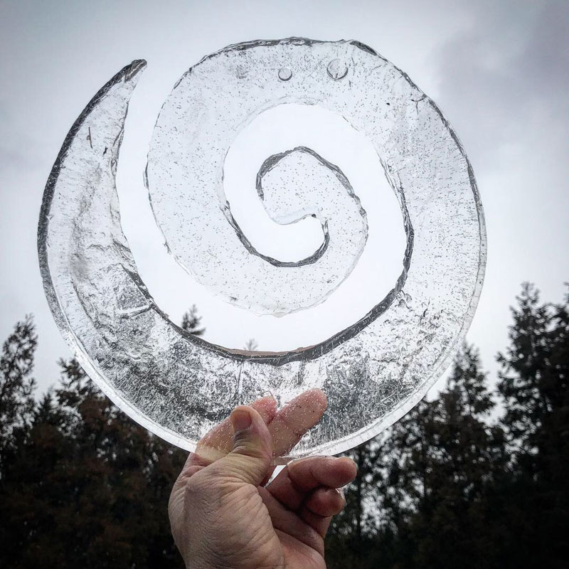 最近ハマってる氷に文字書き。氷が分厚過ぎて貫通できない。けど逆に”O”とか彫れる。薄い氷だと中が落ちて穴になっちゃう。