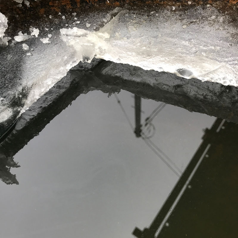 見てよ、この氷の厚さ。電動グラインダーで切ったって簡単に切れるわけじゃないよ。