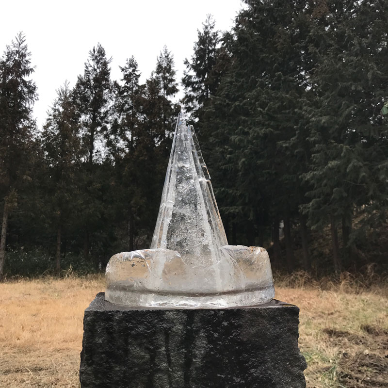 氷って圧力がかかると氷点下でも溶けて再び凍る。この氷のオブジェも力がかかるところは少し溶けて再び凍って組んだ時はバラバラだったのが一体化してる。明日の朝、仕事場に来ても壊れずにこのまま立っているだろう。