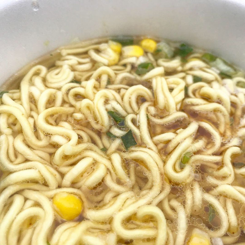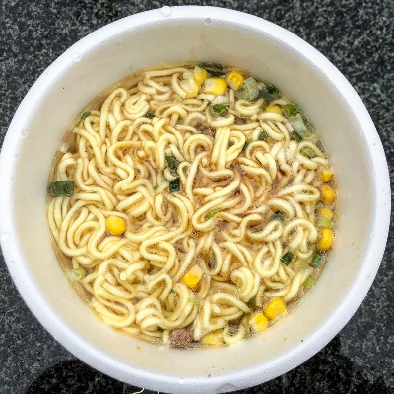 カミさん仕事ででかけていったので雪降る氷点下の仕事場の石テーブルで昼食。非常用に置いてあるカップラーメン食べる。