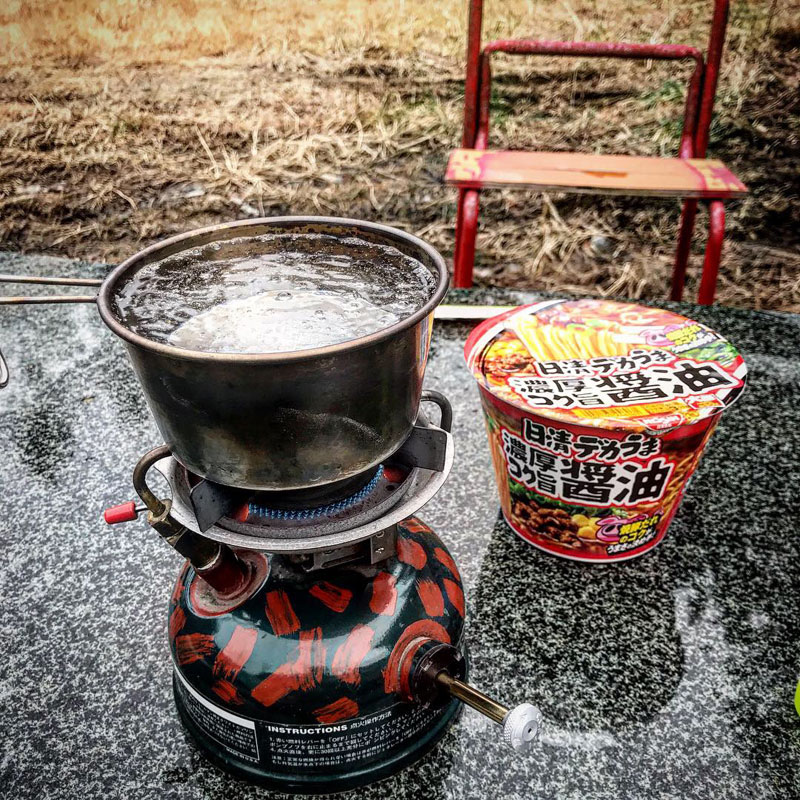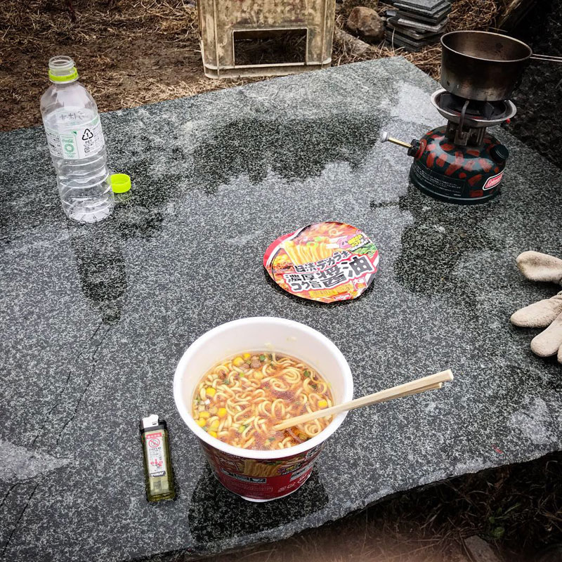 だけど、道具が夕方凍って使えなくなりそうだから午後の仕事もガンガン頑張るべ。石テーブルでラーメン食べたら温まった!