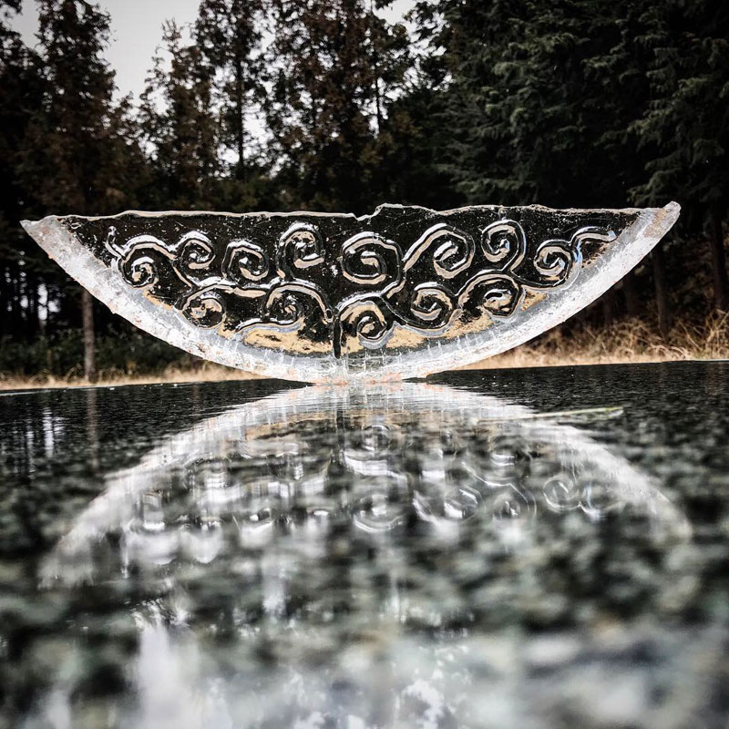 作品に彫ったり紙に描いたりしてる葛の蔓、氷に彫ってみた。