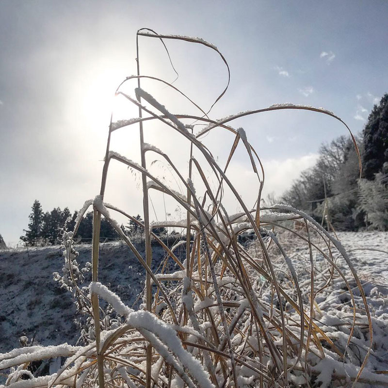 枯れ草を装飾する雪。