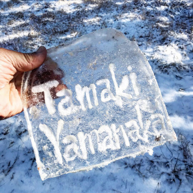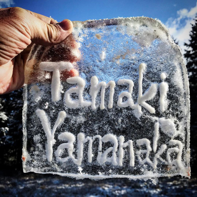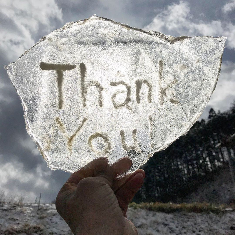 氷に”Thank You !”って彫ってみた。