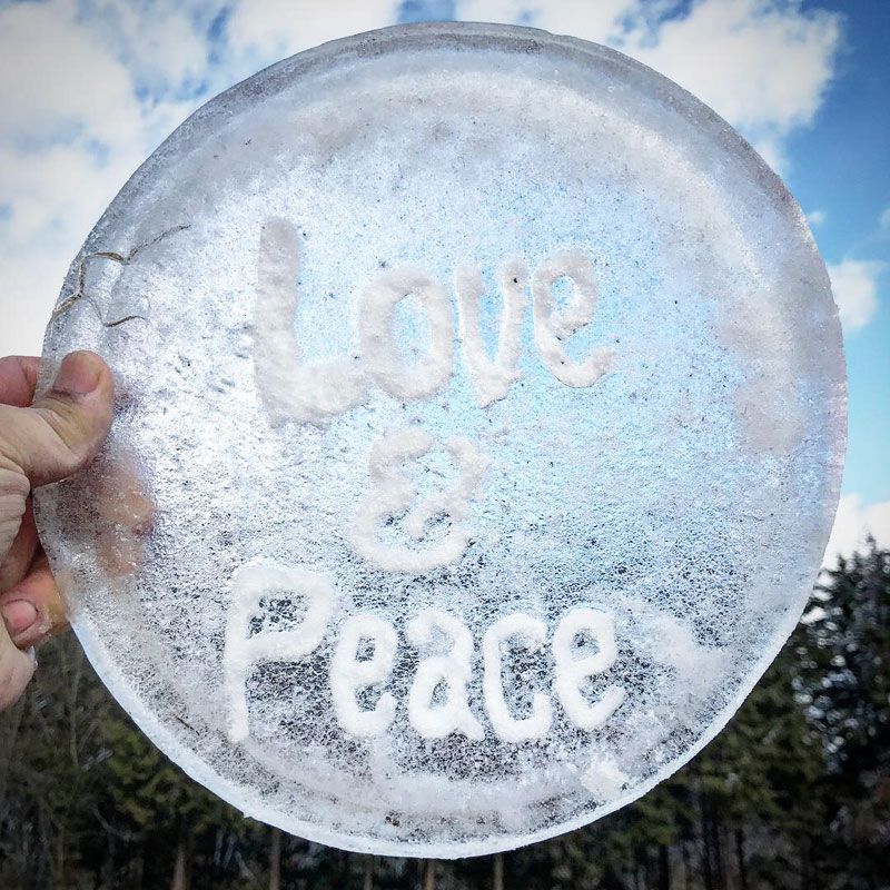 昨日、氷に彫った文字に雪を詰めたら読みやすくなった。
