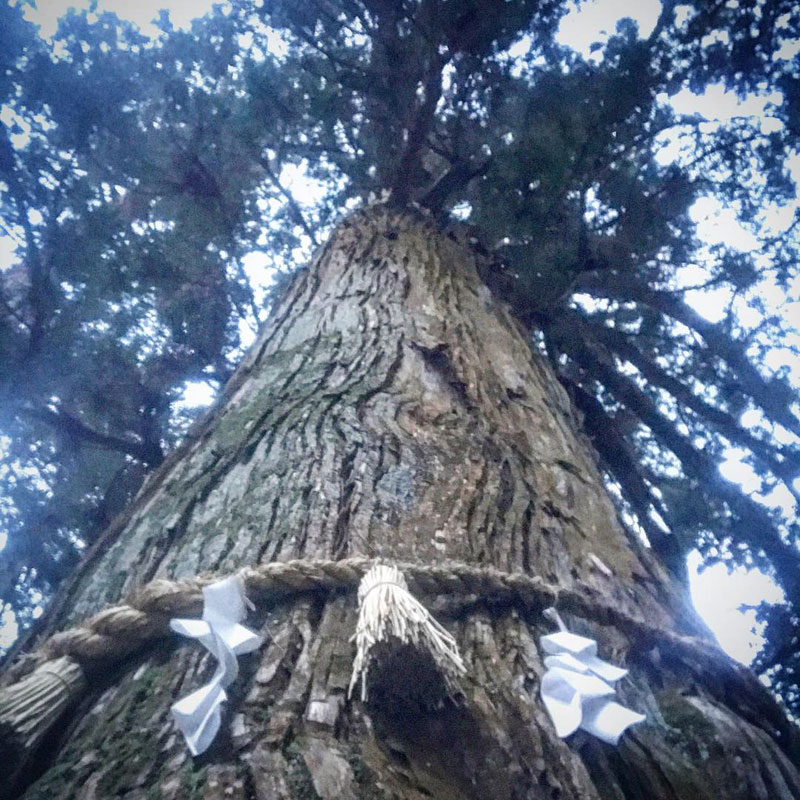 門のように立つ二本の杉の巨木。