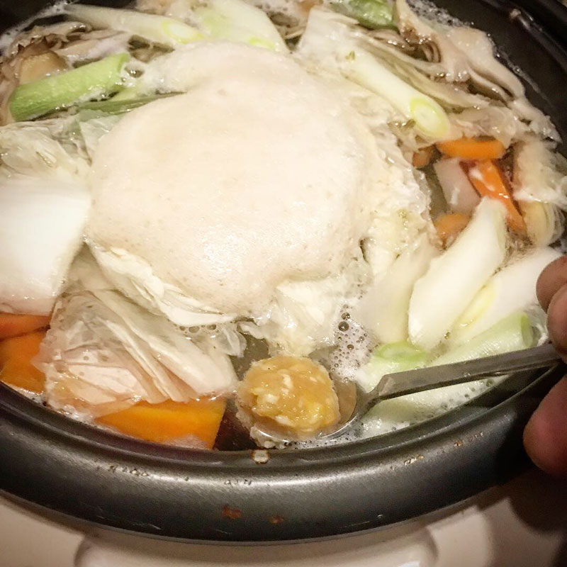 小さじでまるっとしながら鍋に入れて煮えばなをいただく。客人が来ても自分でやってもらう。