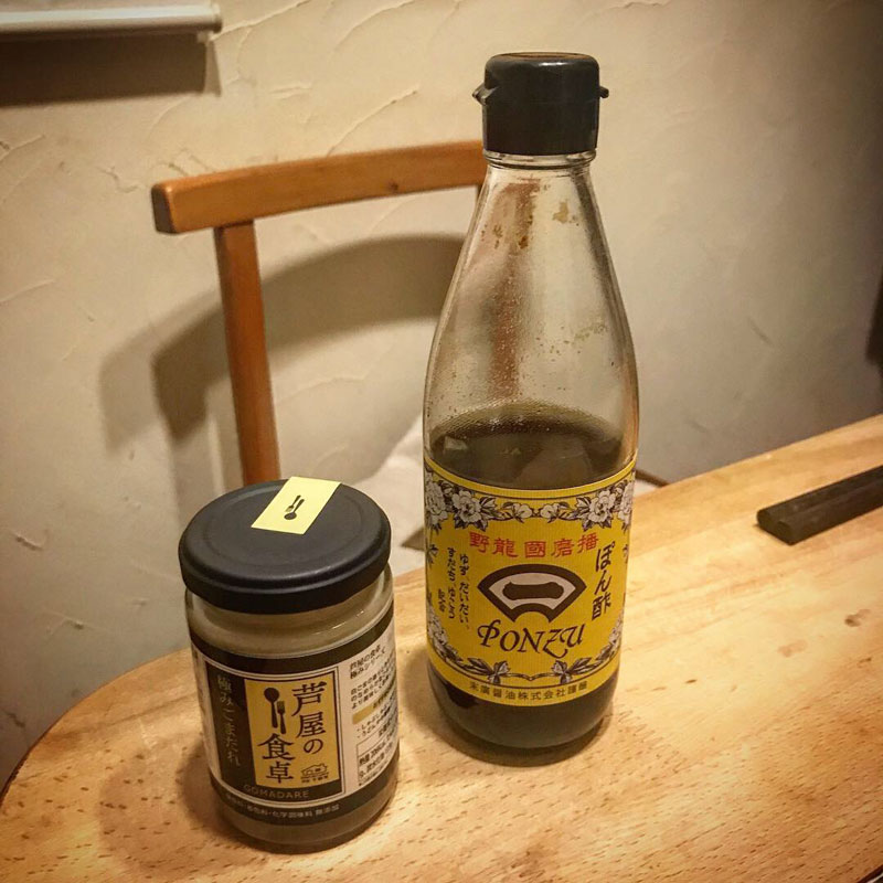 高級そうな美味しいゴマだれとポン酢は幼なじみにもらったもの。ごちそうさま。