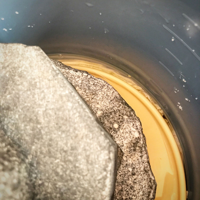 水が上がった。柑橘の皮が無かったので前回の白菜漬けに使ったものを少し入れておいた。