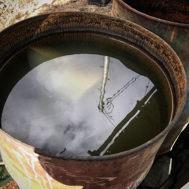 作業に使うため雨水を貯めてるドラム缶の水が今朝は凍ってなかった。