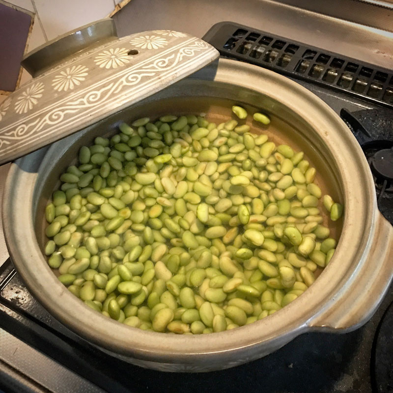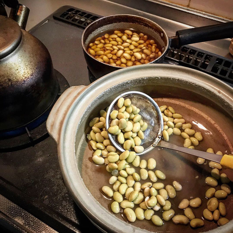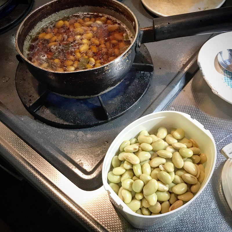 ちょっと豆、大量にうるかしすぎた。こんな大鍋じゃないと煮れない。昼食に戻った時30分火を入れてあとは余熱にまかせた。食べるの大変そうだ!