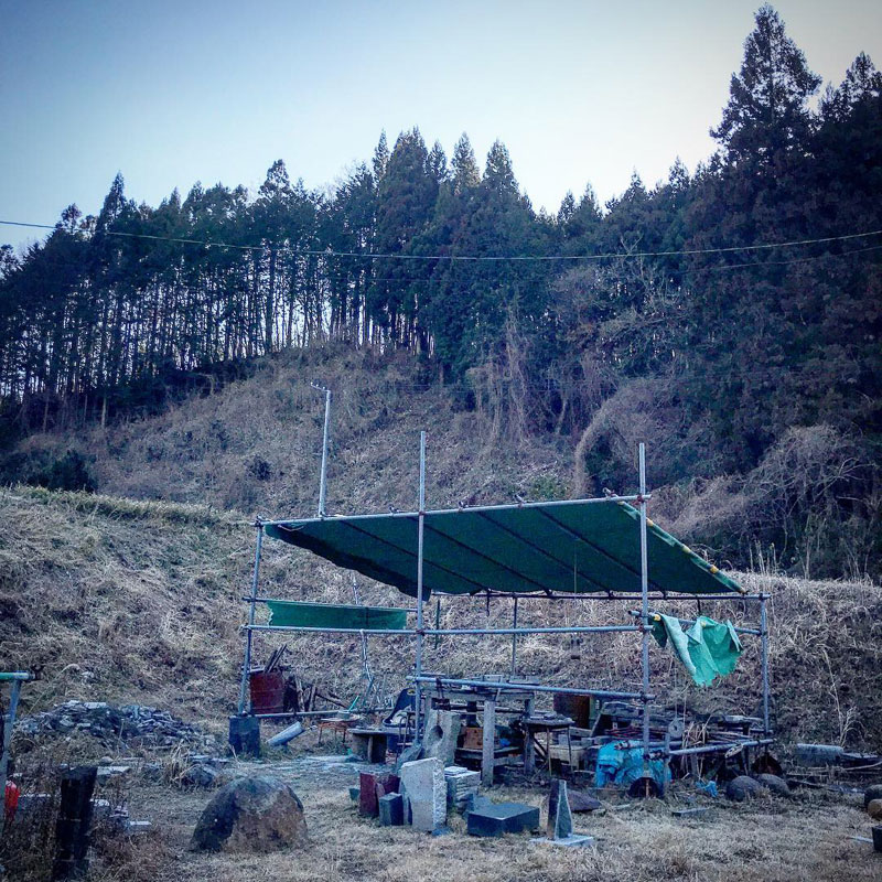 石彫りの仕事場は裏に山を抱えているので冬は午後全く日が当たらない。影になってしまって。