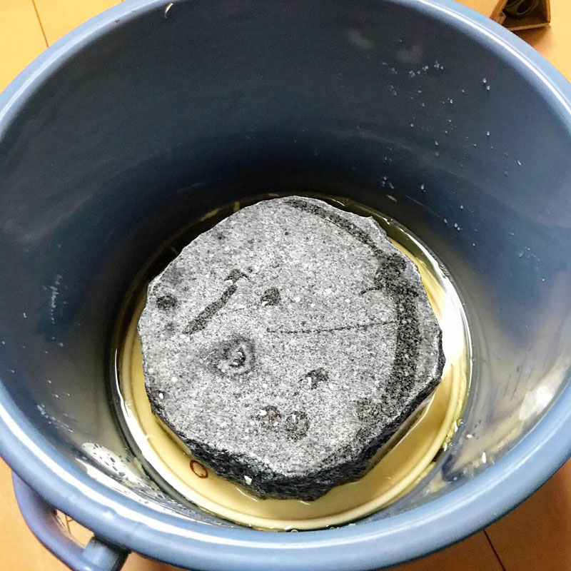 折れてしまって注文していたノミが愛知県から届いたので最後の仕上げして新作の石彫たった今、完成した。