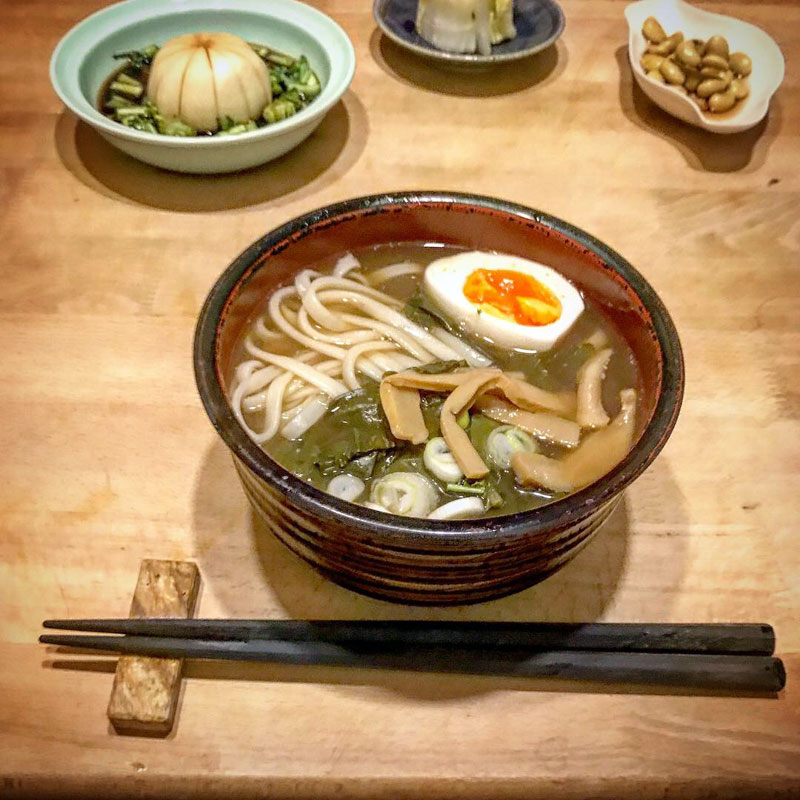 夕食にうどん作った。鶏肉の出汁が出てるつゆ。豆乳も少し。