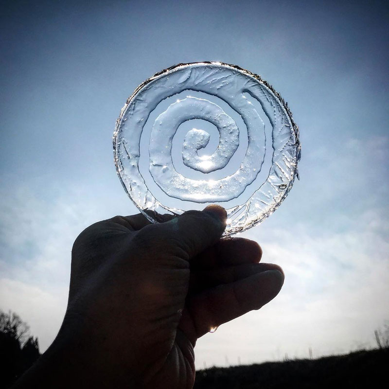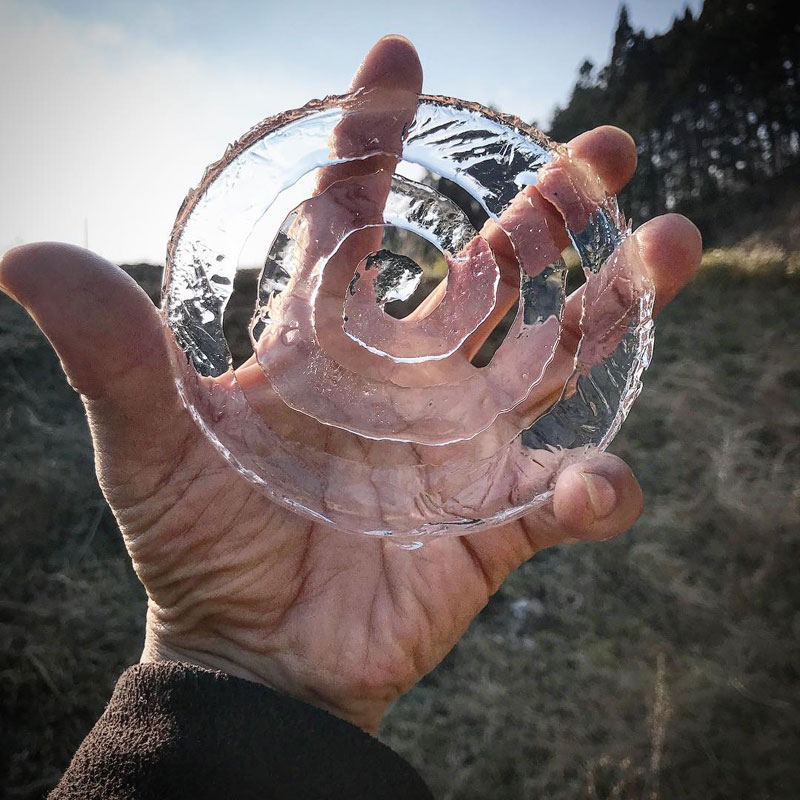 今年思いついた氷に半田ごてでのお絵描き、多分最後だろうからたくさん線を描いてその感触を楽しむ。