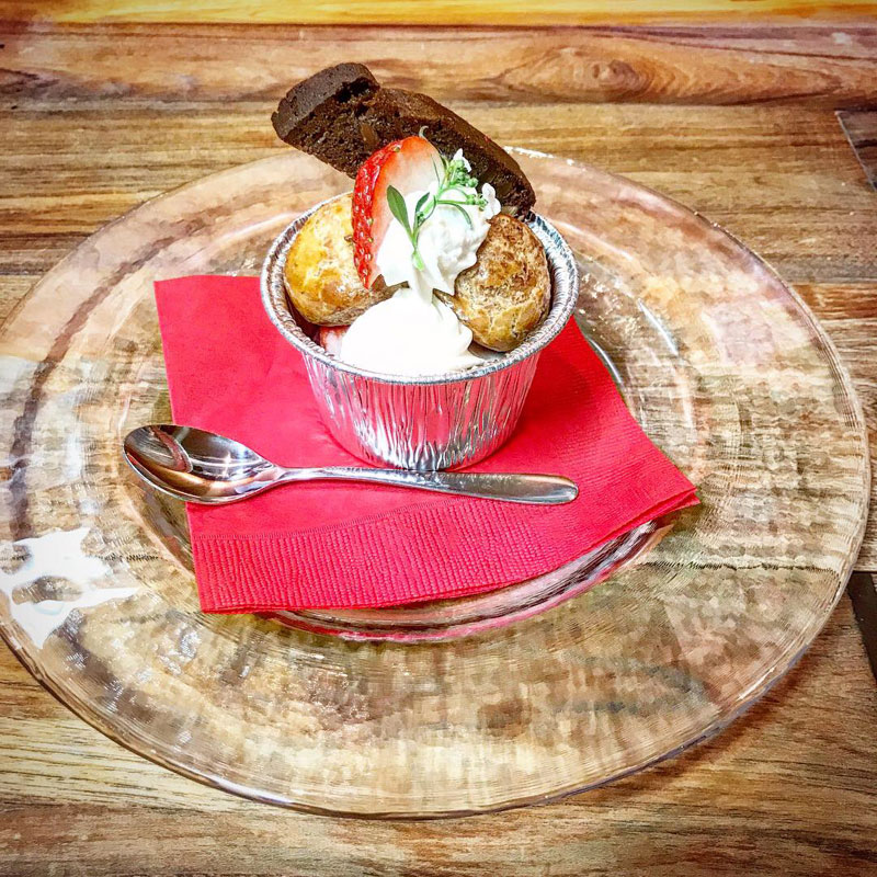 デザートも生クリームとイチゴとイチゴのムースを混ぜながら食べて至福。ごちそうさまでした!