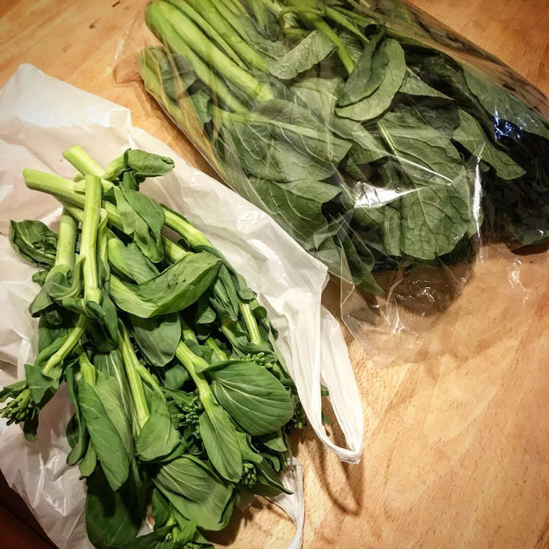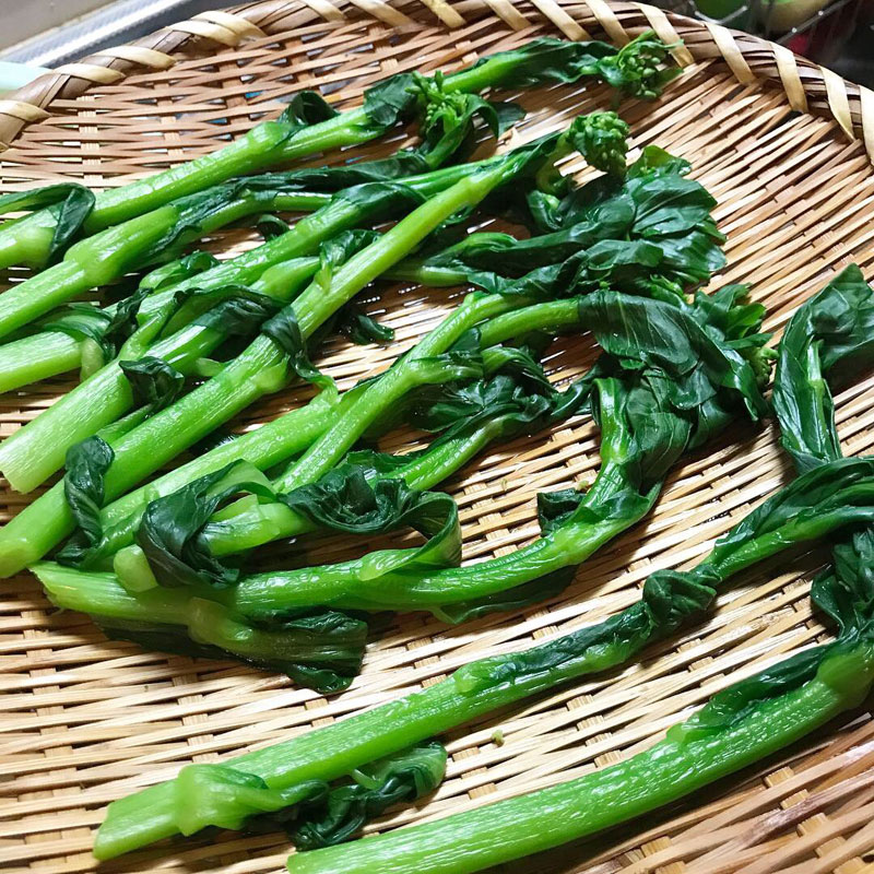 夕方、採りたての青梗菜の菜花と小松菜いただいた。