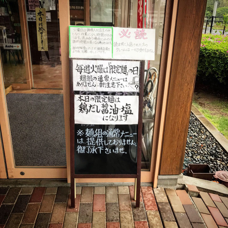火曜日は限定麺のみとなっていた。定番が食べたかった。。。