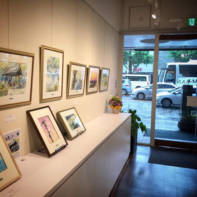 時折強く雨が降る。でも今回の水彩画展のテーマは「水」。雨は神様が初日を祝ってるんだろうw