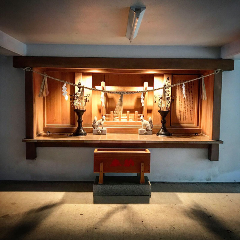 かつての社殿は平成2年に放火によって消失し、平成6年に再建された。ここは元のお宮があったところ。