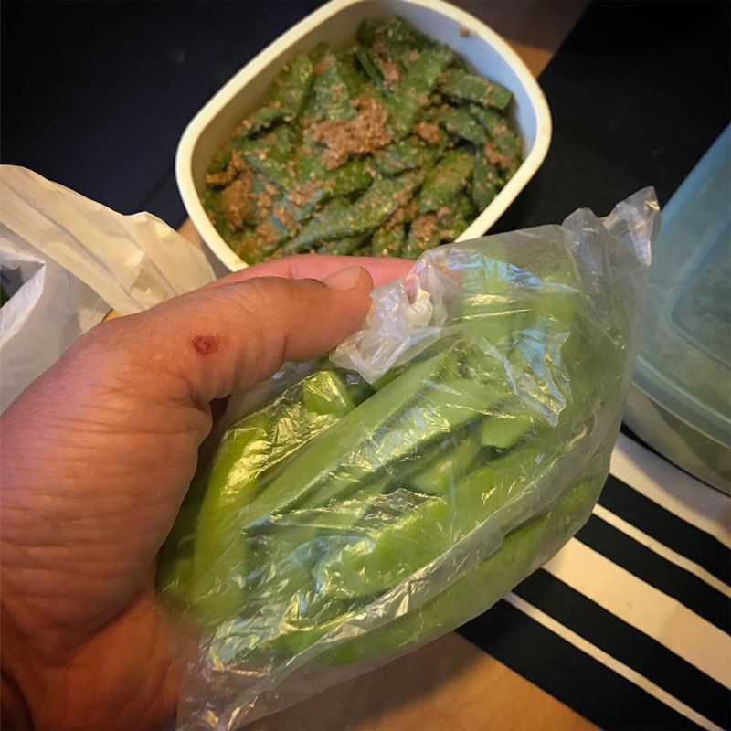 昨日、ブロッコリーと絹さや、山のようにいただいたばかりなんだけど今日、別の方にまたスナップえんどうと
