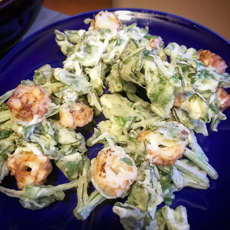 カミさんの揚げたクレソンとちくわの天ぷら美味い!