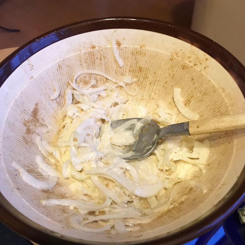 きのういただいた新玉ねぎのサラダの残り。