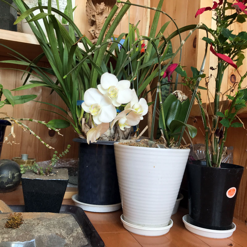 なかなか咲かなかった鉢の胡蝶蘭も咲いた。毎日、暖かい。